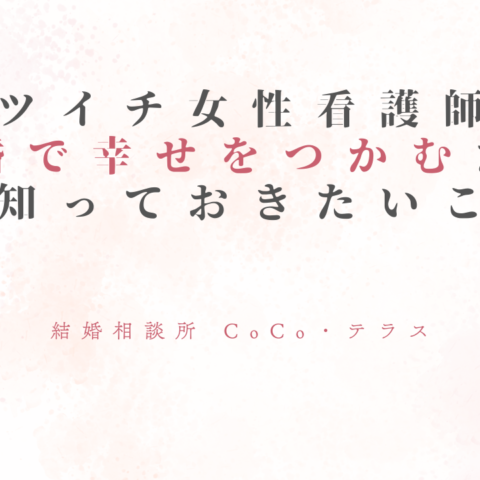 結婚相談所 CoCo・テラスのカウンセラーは、現役の看護師の顔を持ちます。25年の長きにわたり、およそ6万人の患者さまのお世話に携わった看護師が、今度はあなたの婚活に寄り添います。看護師など女性が多い職場、または男性が中心の仕事環境で出会いがないとお悩みのあなた、ぜひお気軽にご相談ください。カウンセラーの経験を生かしたアドバイスはもちろん、およそ84,000名※の会員様の中から日常生活では出会う機会のないお相手をお探しします。新たな出会いに心が躍る婚活をココから始めましょう!