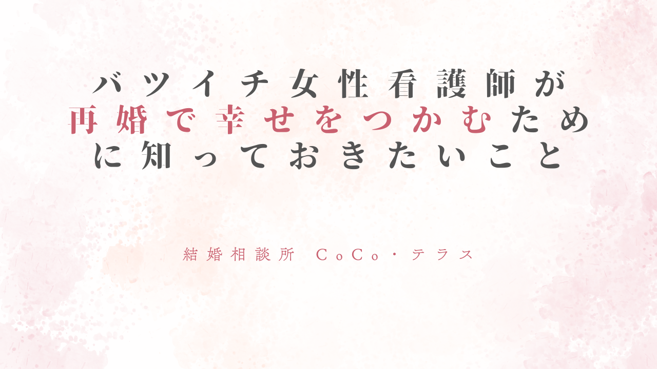 婚活を考えているバツイチの女性看護師さんから、CoCoテラスにはたくさんのご相談が届きます。その声に耳を傾けると、共通した悩みが浮かび上がってきます。あなたも「わかる」と感じるものがあるのではないでしょうか。