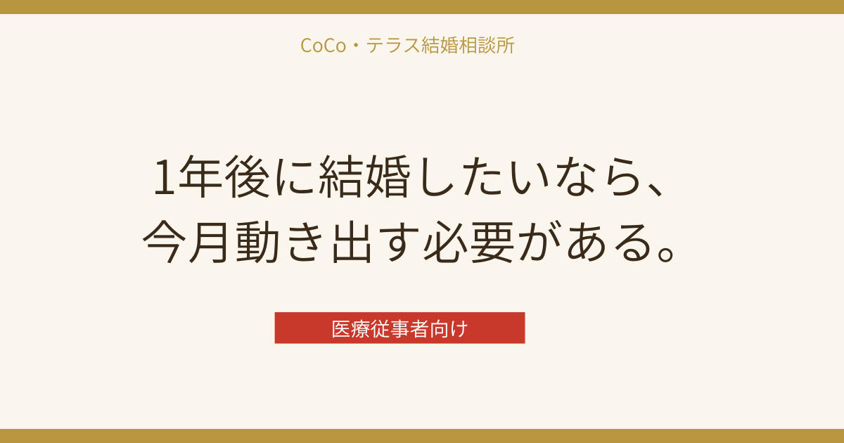 1年後に結婚したいなら、今月動き出す必要がある。